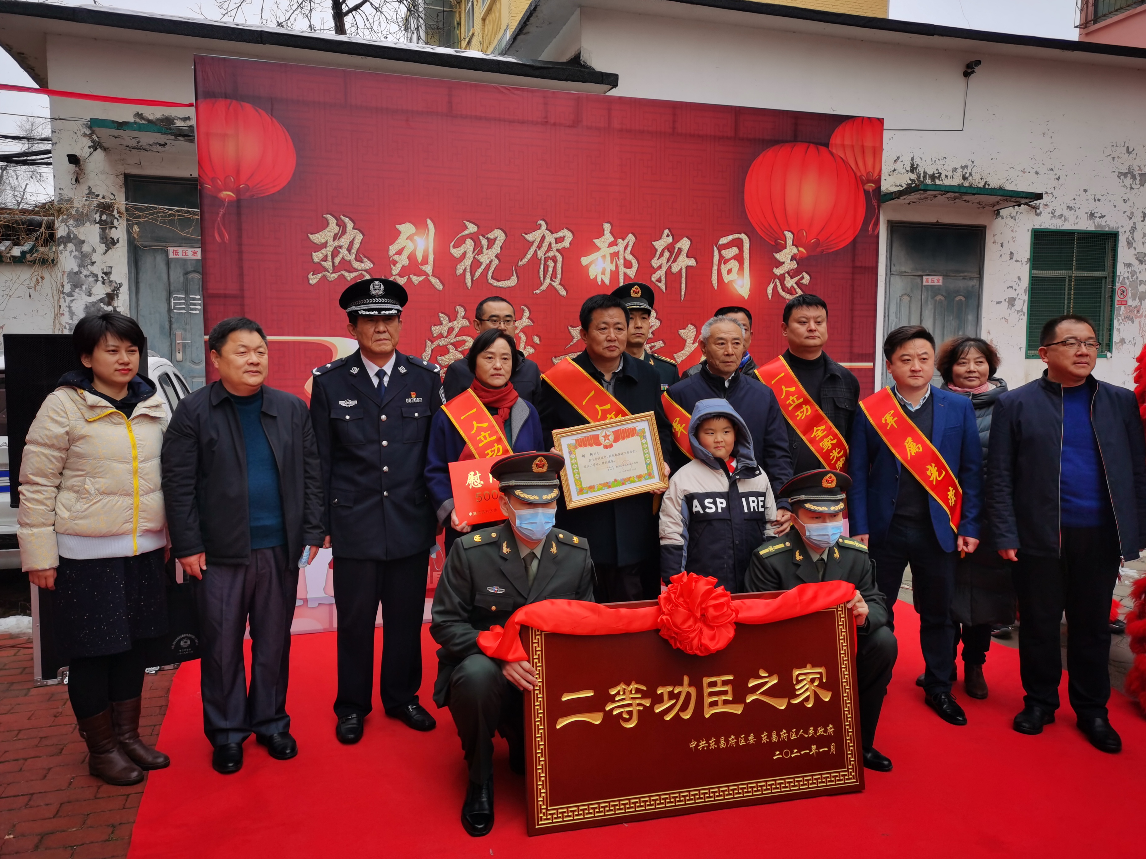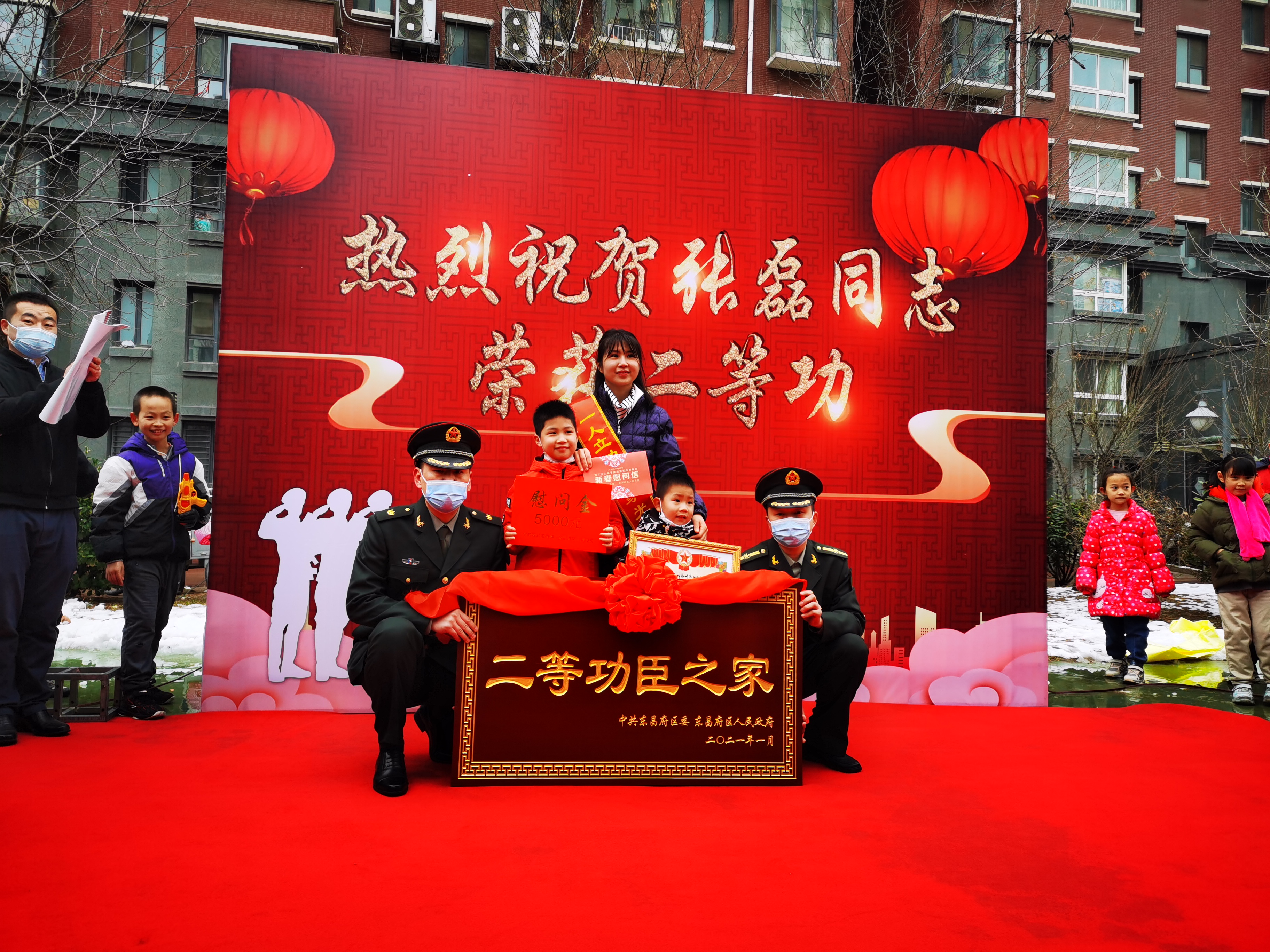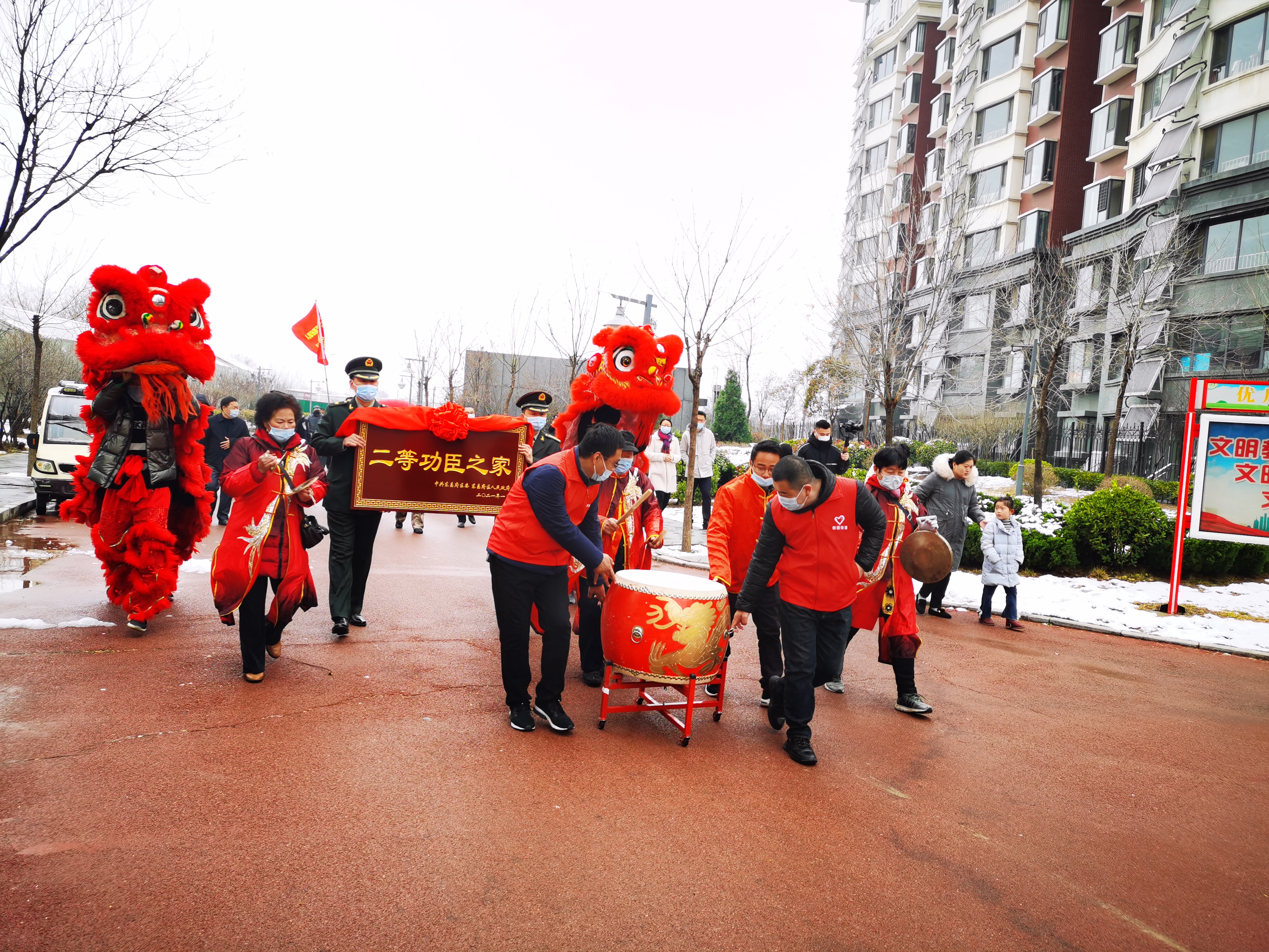 2月25日上午,一场瑞雪将东昌府区装扮的银装素裹。奥森花园小区和二建家属院内,锣鼓喧天,两只红狮上下跳跃,簇拥着醒目的“二等功臣之家”烫金牌匾,热热闹闹地来到荣立二等功的张磊、郝轩的家门前。左邻右舍都出来了,热烈的气氛冲掉了天气的寒冷,两家军属心中既温暖又激动,充分感受到“一人立功、全家光荣”的喜悦。